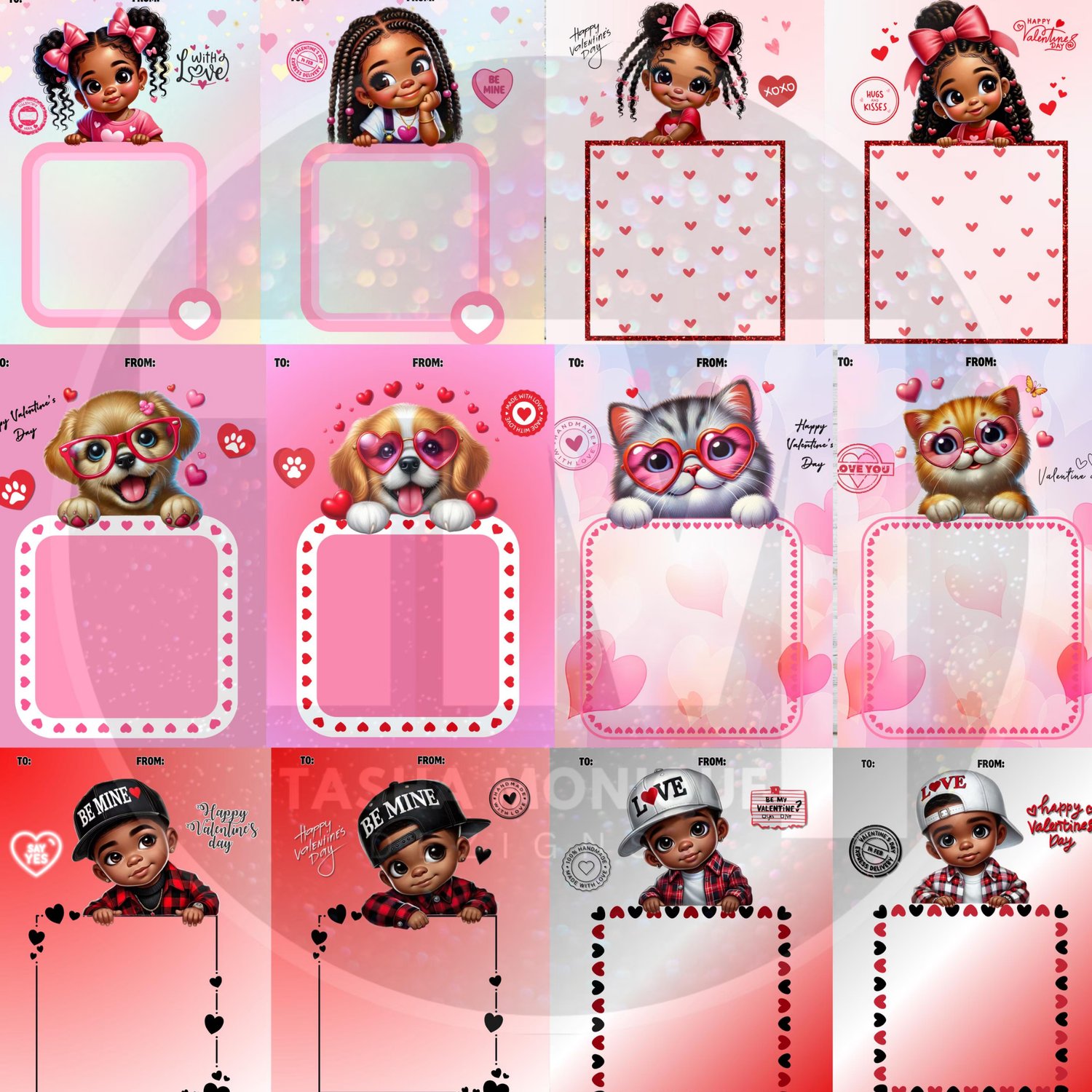 18 Unique Designs: Featuring cute kids, lovable pets, and cheerful bears in festive Valentine’s themes.