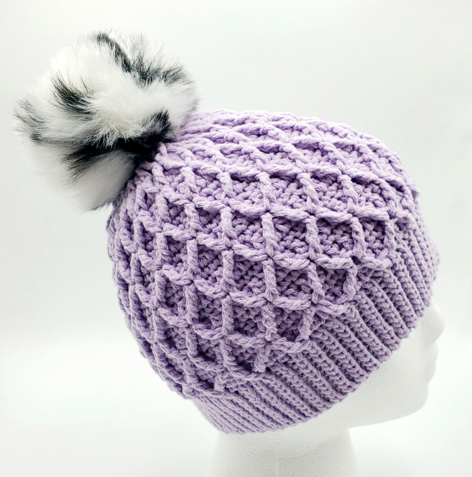 The hat is worked in two parts, first you will make the ribbed brim, then crochet the hat following the diamond pattern.
