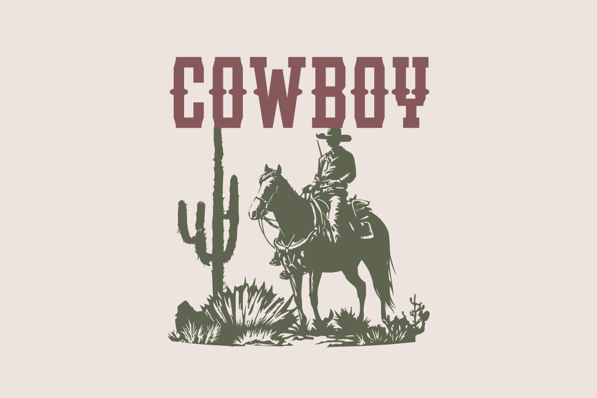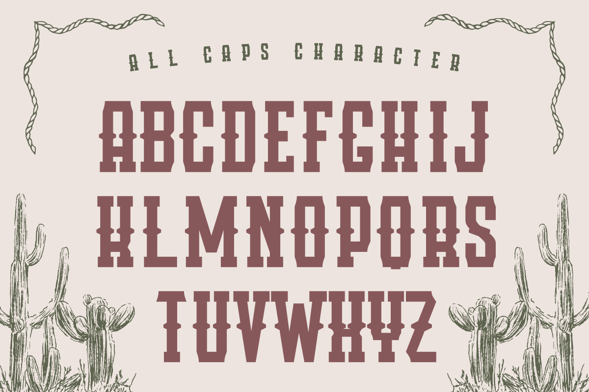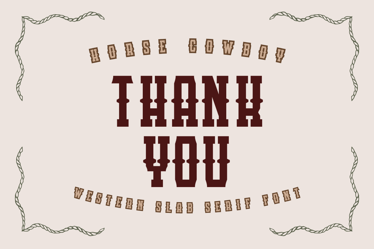 Horse Cowboy is a Western slab serif font inspired by cowboy culture, vintage rodeo posters, and old western signage. With bold slab serifs and rugged details, this typeface is perfect for Western-themed branding, rustic logos, saloon signs, adventure posters, country music covers, and retro packaging. Its strong character and nostalgic charm make it ideal for designs that need a bold, vintage Western feel.
