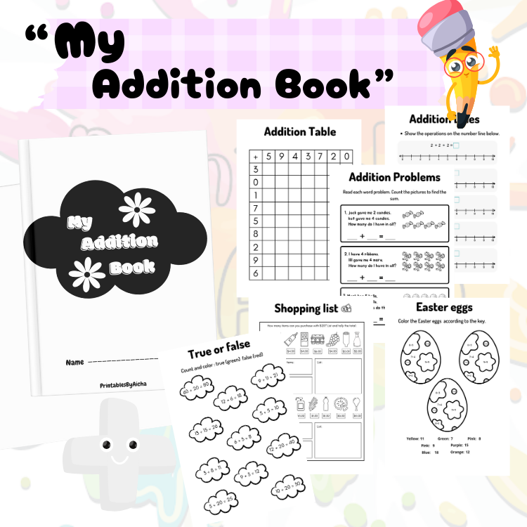 Turn math into an exciting adventure with My Addition Book – a colorful and interactive collection of addition worksheets for kids, perfect for kindergarten, first grade, and homeschool math learning! This engaging workbook builds foundational skills while making learning fun and easy.