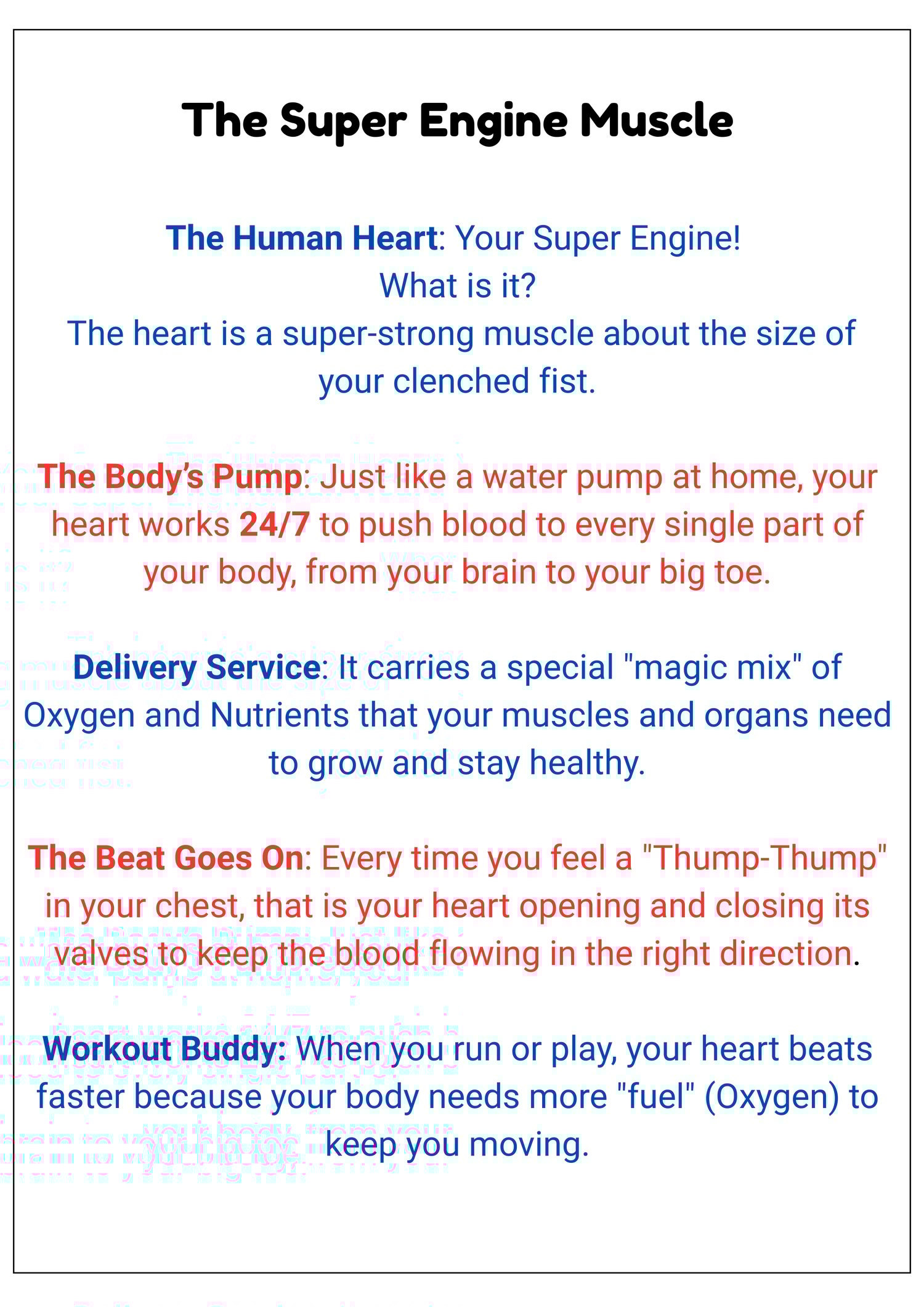 A fun and educational learning pack that helps children understand how the human heart works through clear visuals, storytelling, and interactive activities.