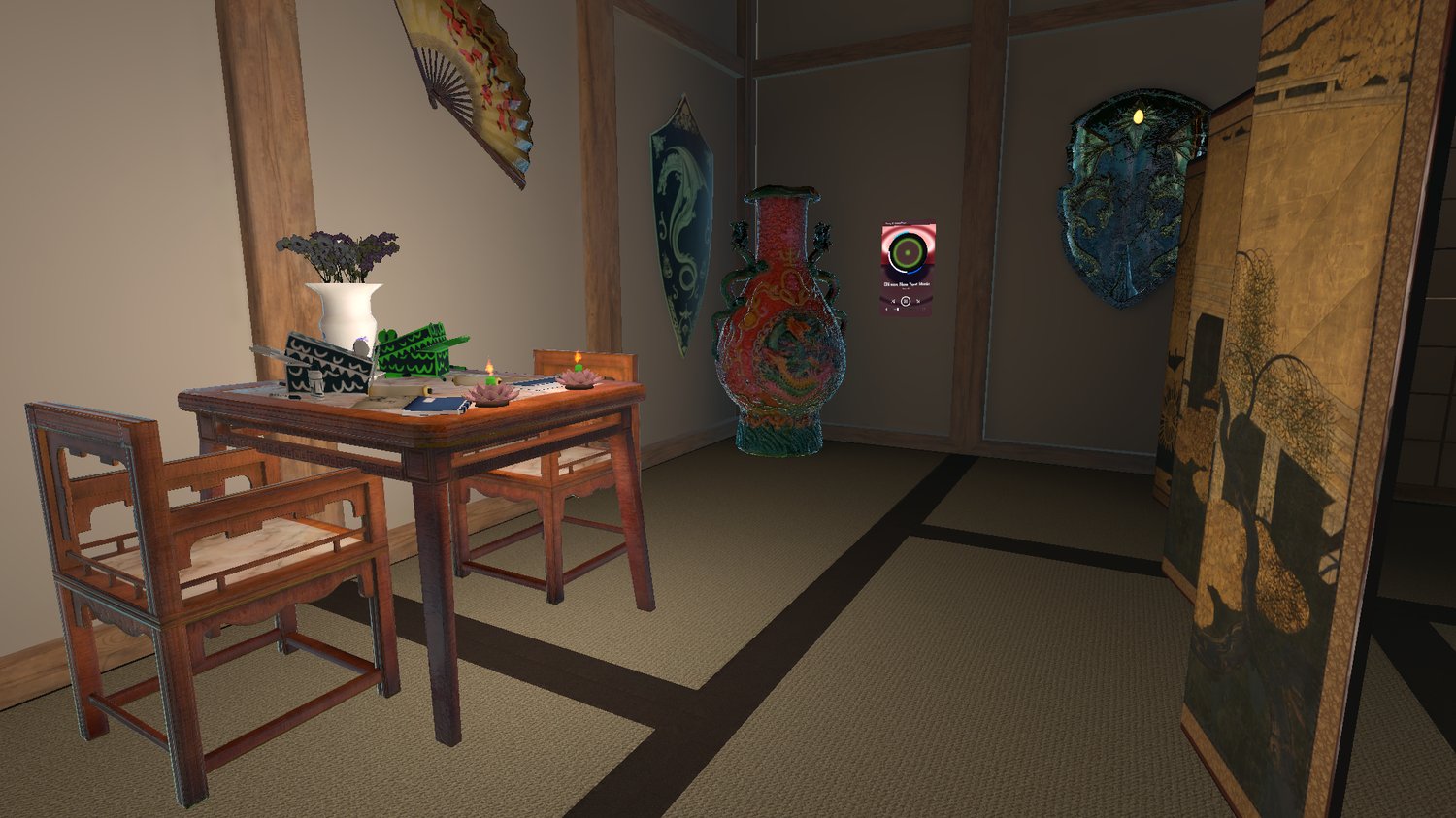 3.) Togglable Chinese New Year Music, this is connected to the music player by the large vase in the corner of the room! The song is shortened on Quest due to file size restrictions.