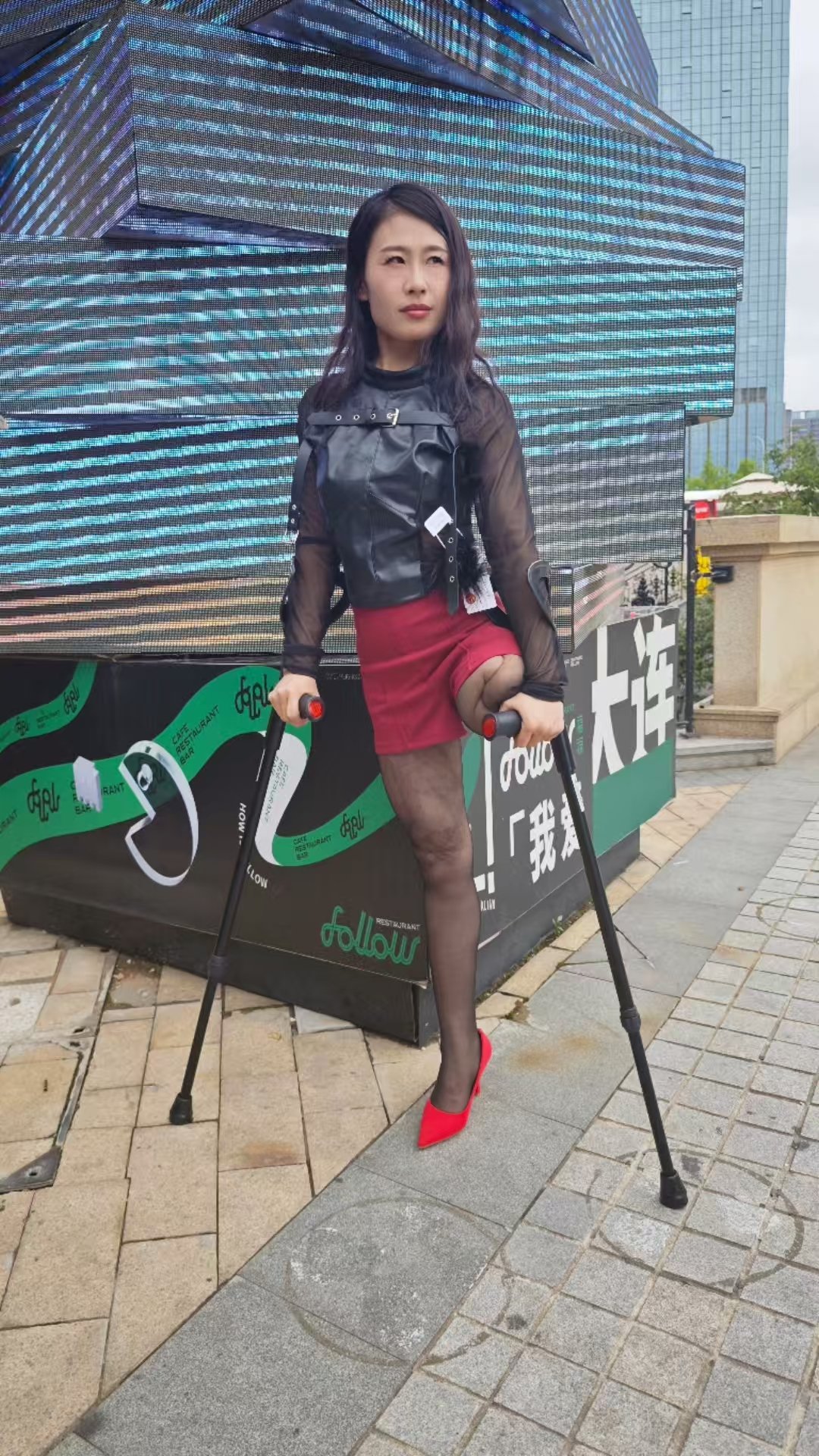 Ayla: Sak Amputee Girl Black stockings and colorful prosthetic limbs for traveling