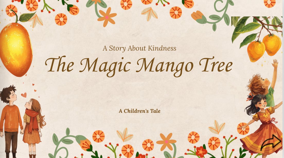 Step into a heartwarming story about kindness, friendship, and the magic of giving. The Magic Mango Tree- A Kindess Tale follows a special tree that grows not just sweet mangoes, but also teaches an important lesson — that even small acts of kindness can make a big difference.
