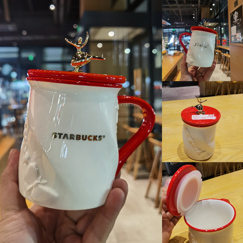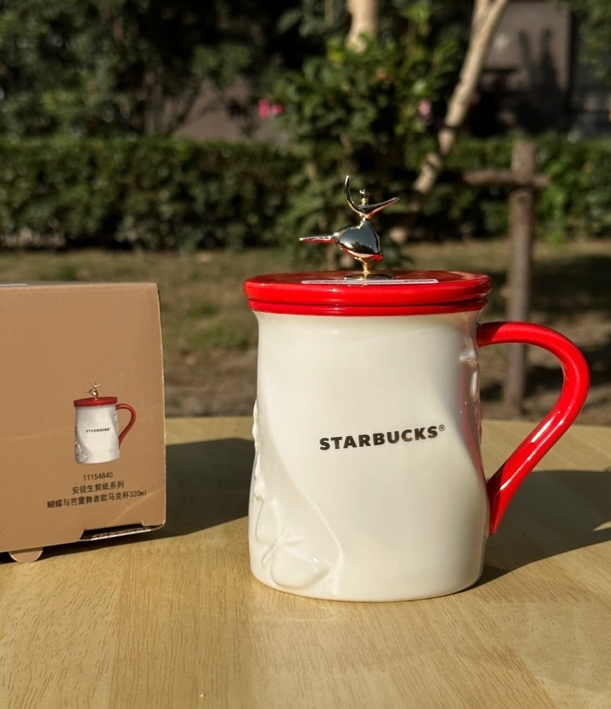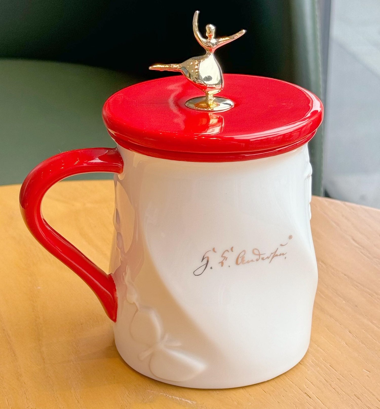 2023 Starbucks China Hans Christian Andersen Papercut Series 11oz Porcelain Mug with Golden Ballerina Figurine on Lid