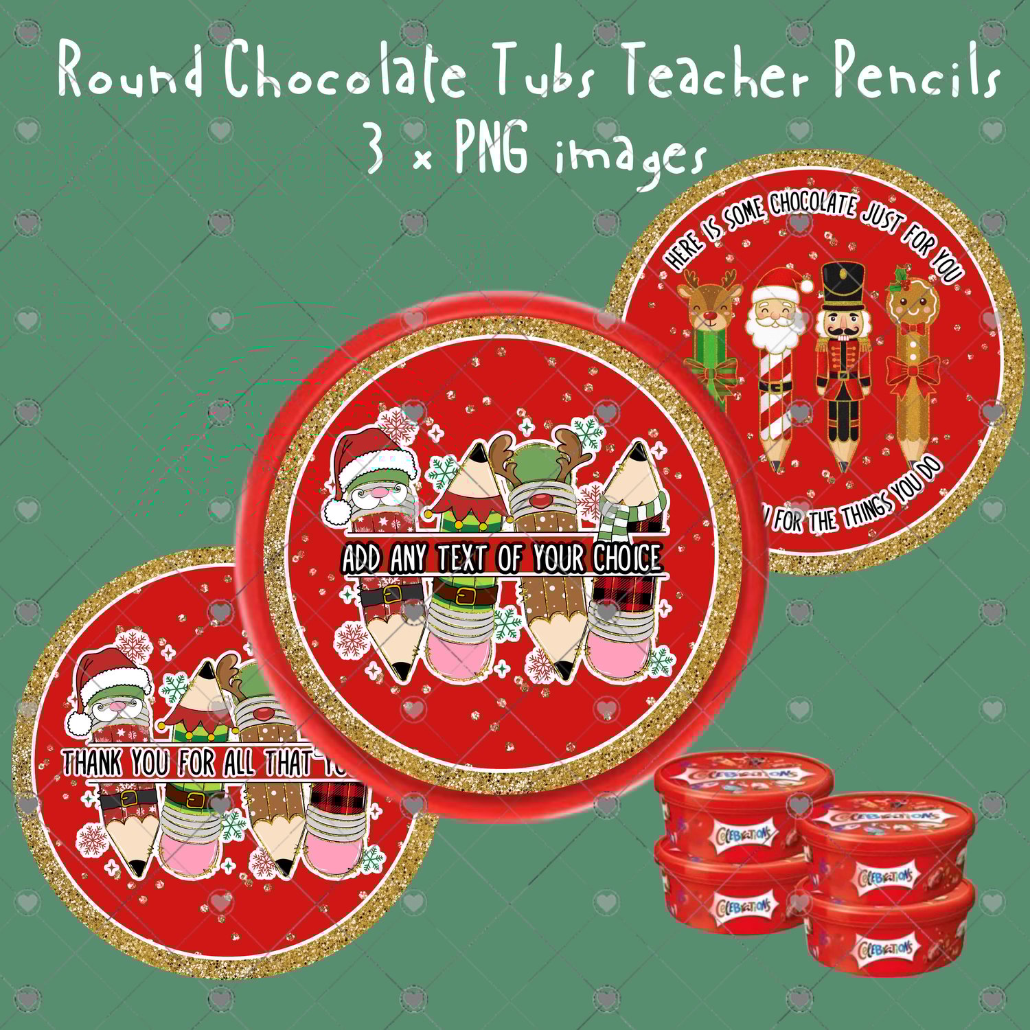 3 x PNG images to fit the round shape chocolate tubs as can be seen in the mock up photos