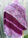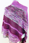 Purple shawl uses one skein each of Miss Babs’ Yummy 2-Ply in Shining City, Plum and Fig.