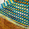 The shawl is an asymmetric triangle consisting of a combination of slipped stitches, garter stitch and a simple lace mesh. Only one color is worked per row. There are two “self-finishing” borders that are worked as part of the shawl.