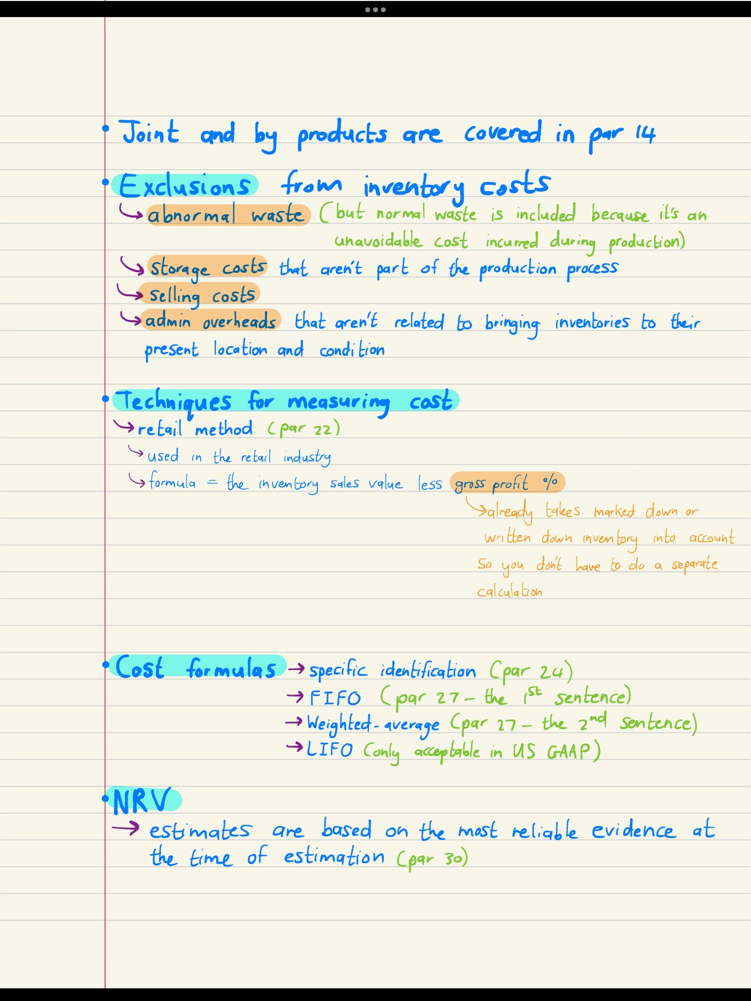 The notes are complete with explanations and references to the paragraphs in IAS 2.