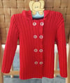 This child’s double-breasted jacket has set in sleeves and a hood, and is worked in a textured rib stitch. Warm and stretchy, it will suit both boys and girls.