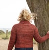 YARN: Madelinetosh Farm Twist (3.5 oz/100 g, 225 yds/205 m, 100% Superwash Merino Wool), 4 (4, 5, 5, 5, 6)(6, 7, 8, 9, 10) skeins of colorway Subtle Flame, or approximately 850 (900, 960, 1020, 1125, 1400)(1518, 1690, 1900, 2025, 2250) yards of any DK or light worsted weight yarn that matches gauge.
