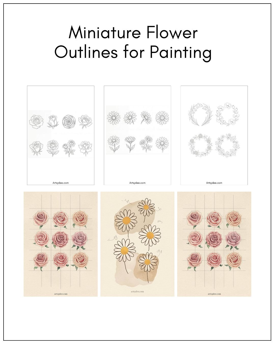 Tiny Flower Watercolor Templates — 12 Printable Pages of Miniature Floral Outlines
