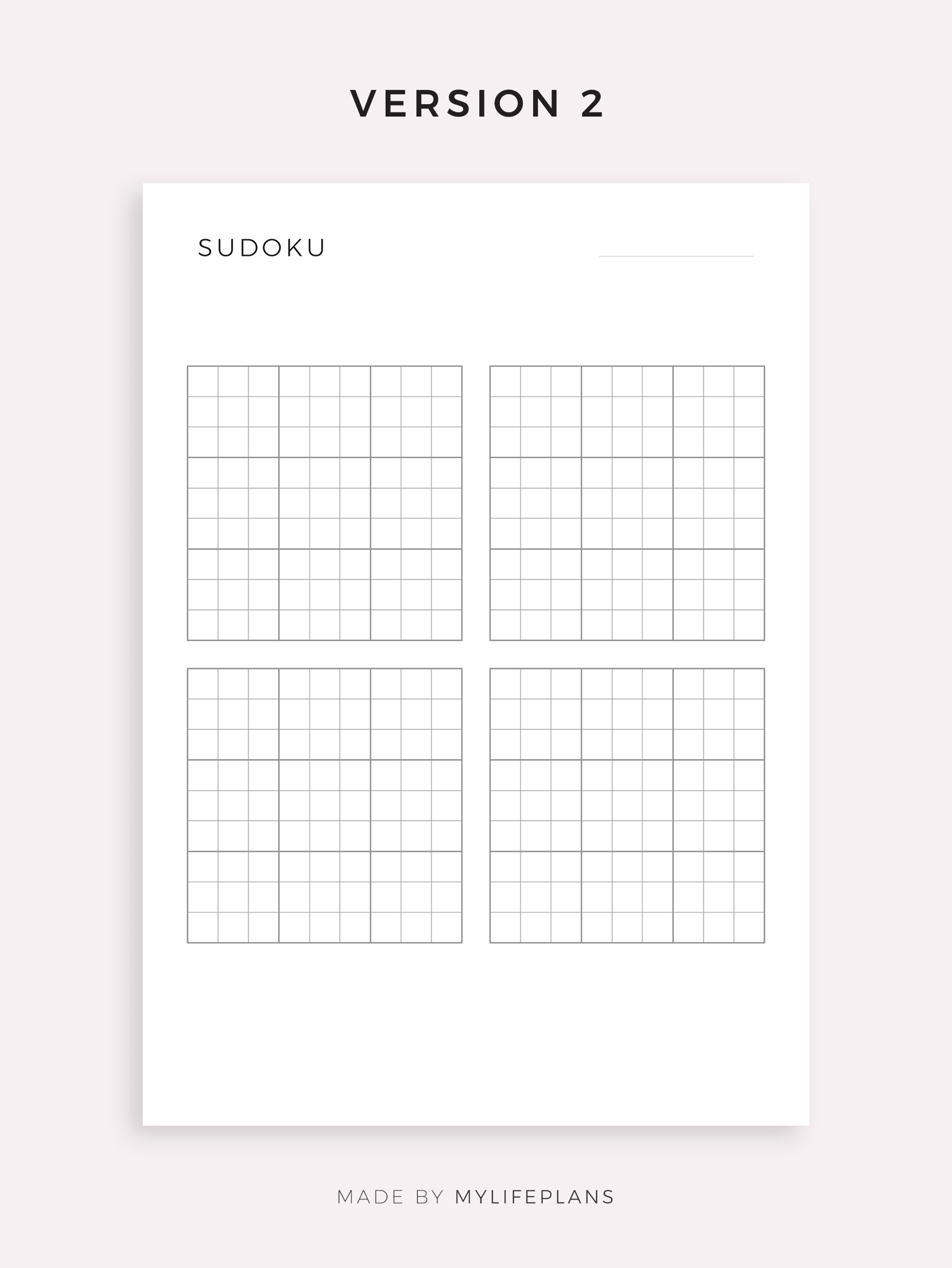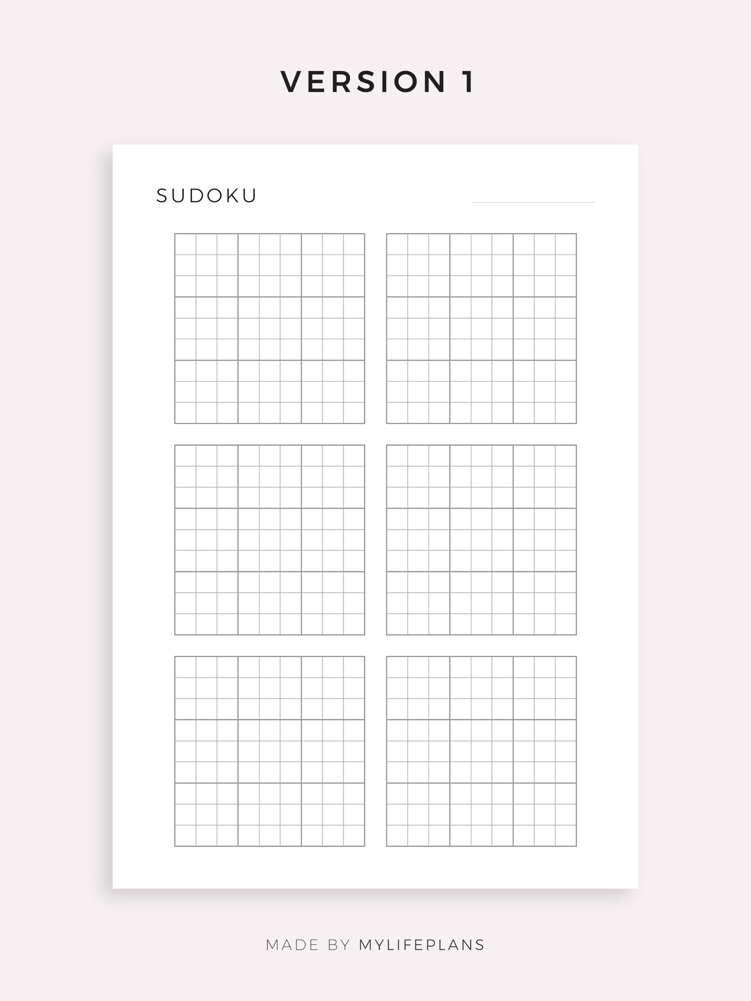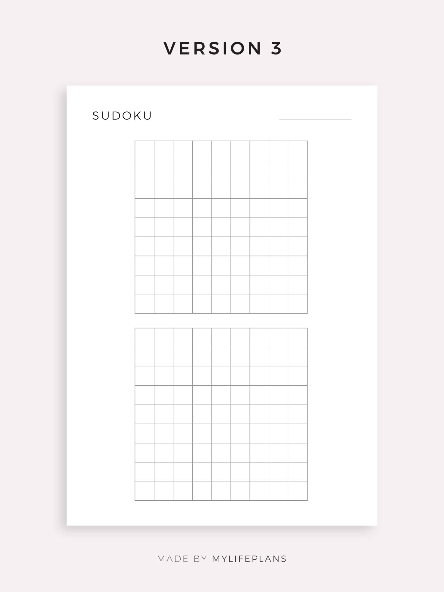Printable Blank Sudoku Sheets, Sudoku Grid Template, Instant Download PDF