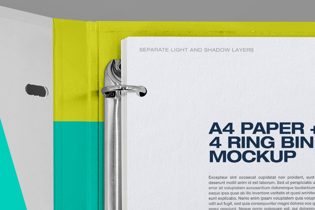 4-Ring Binder Mockup – A4 Paper Flat-Lay Scene (3 Objects)