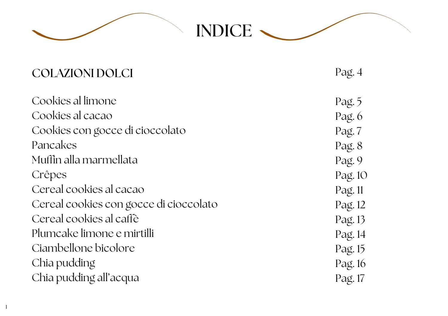 Qui hai a tua disposizione 35 ricette, di cui 27 dolci e 8 salate, per tutti i gusti: fra cornetti, pancakes, biscotti, cereal cookies, macedonie originali, torte, granola, schiacciata, budini e tanto altro avrai l'imbarazzo della scelta!