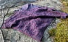 This wrap is created using the Fission Knitting technique. Two heavy laceweight yarns are held together to create a fingering/sport weight knit. Miss Babs Yearning is a luxurious yarn that creates a lightweight, squishy fabric when worked into a marl.