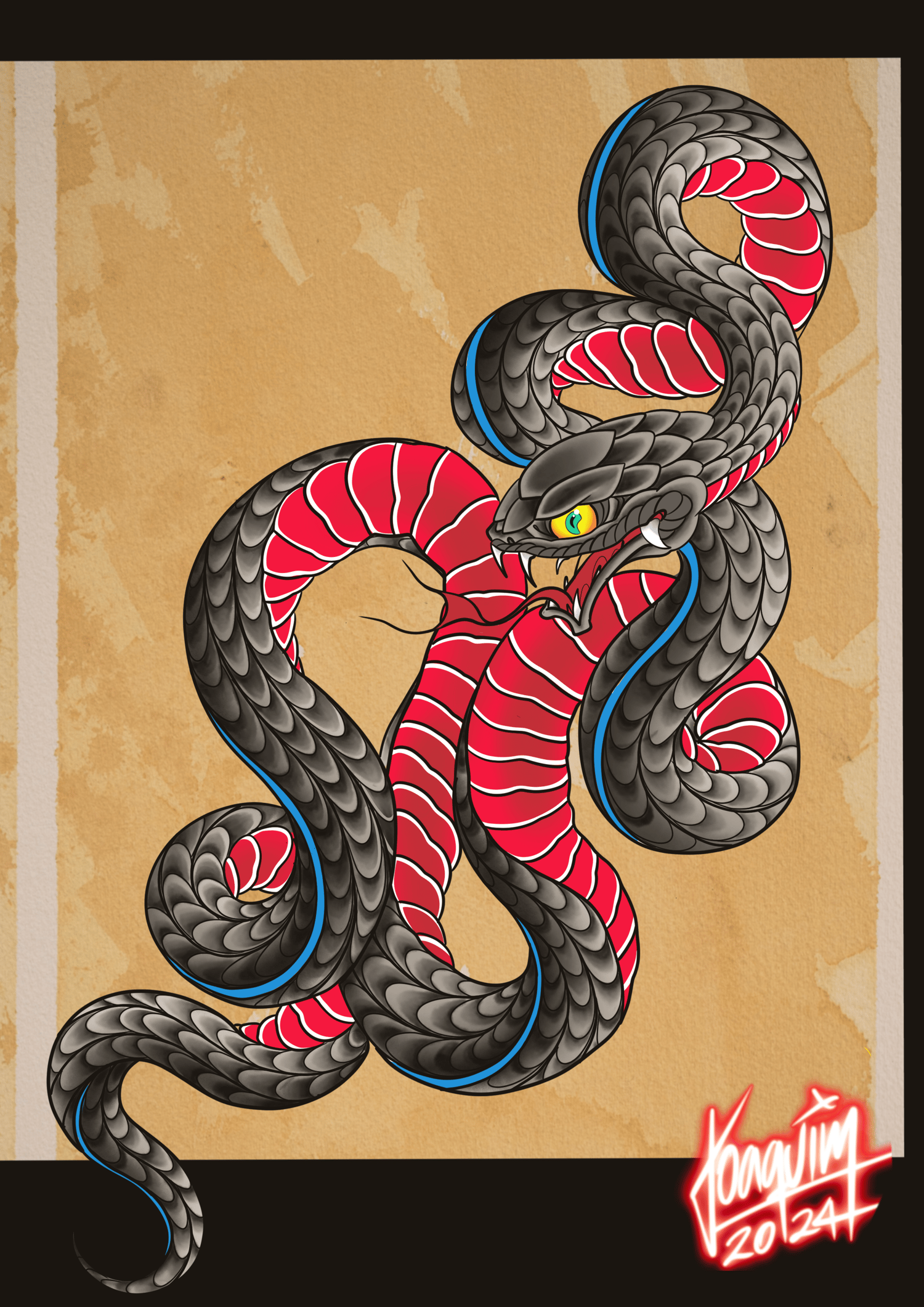 Hebi snake tattoo design, 2025 is the year of the serpent.