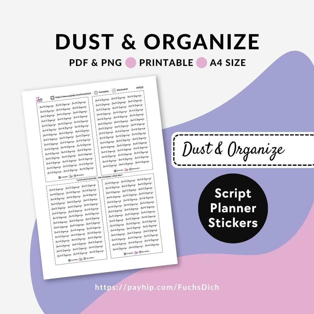 Dust & Organize Script Sticker | PDF Planner Stickers