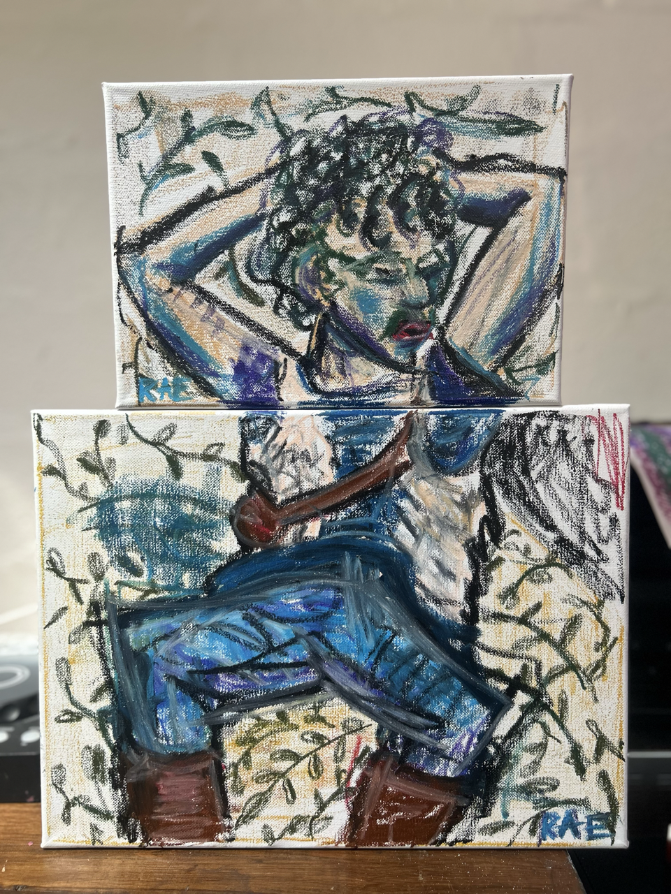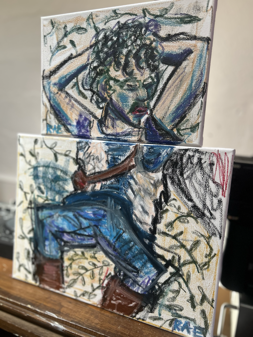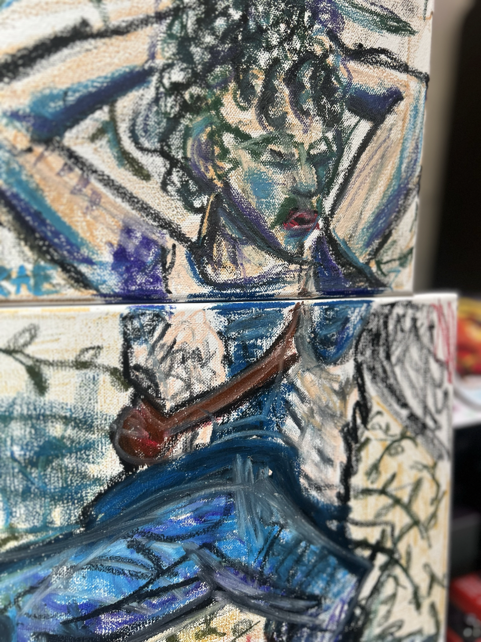 Paddy In Boots - oil pastel on split canvas - 12" X 8", 16" X 12"