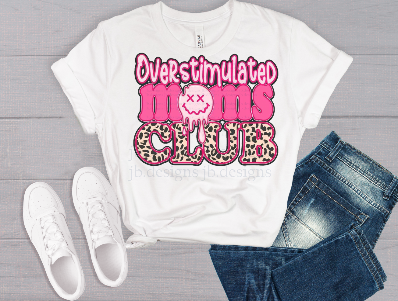 Pink Leopard Print "Overstimulated Moms Club" Sublimation PNG