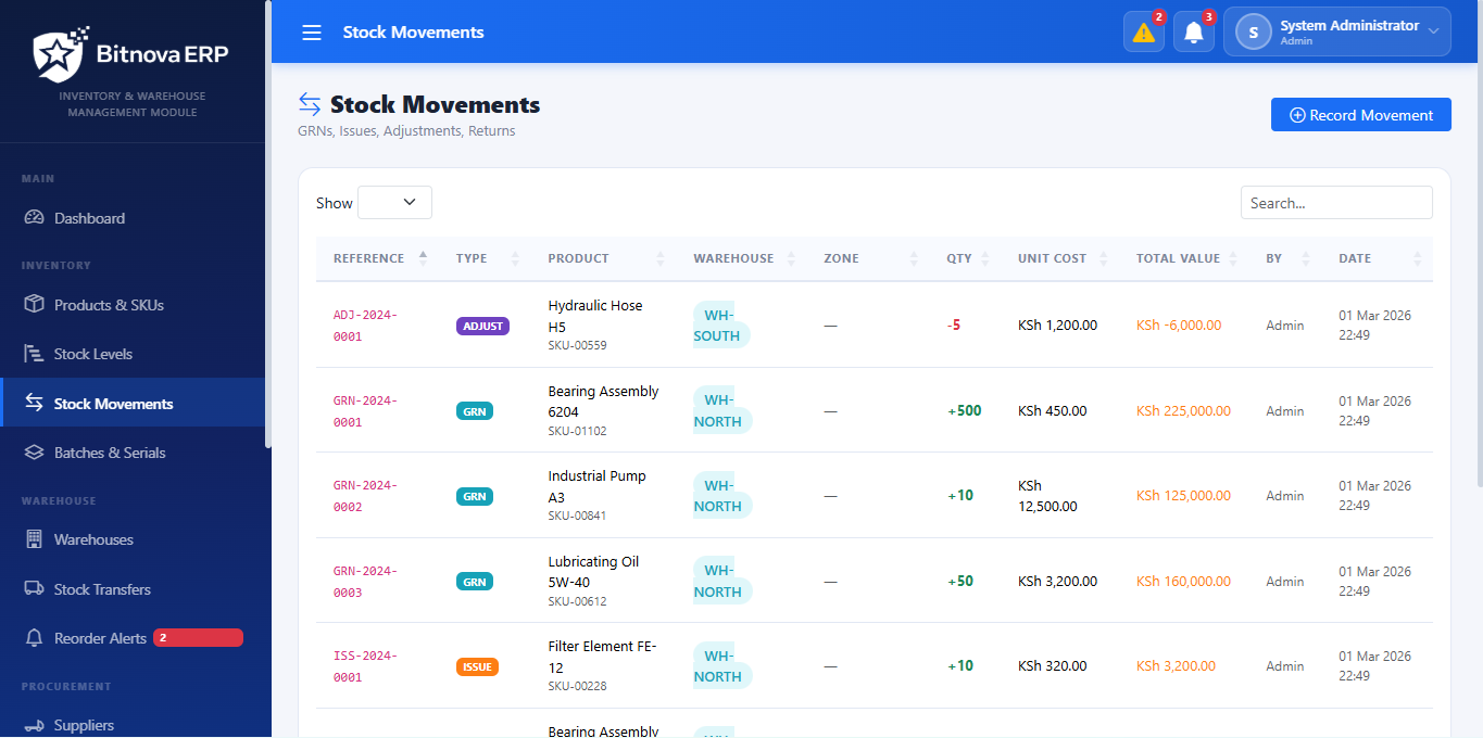 Take control of your inventory with the Bitnova ERP Inventory & Warehouse Management Module.