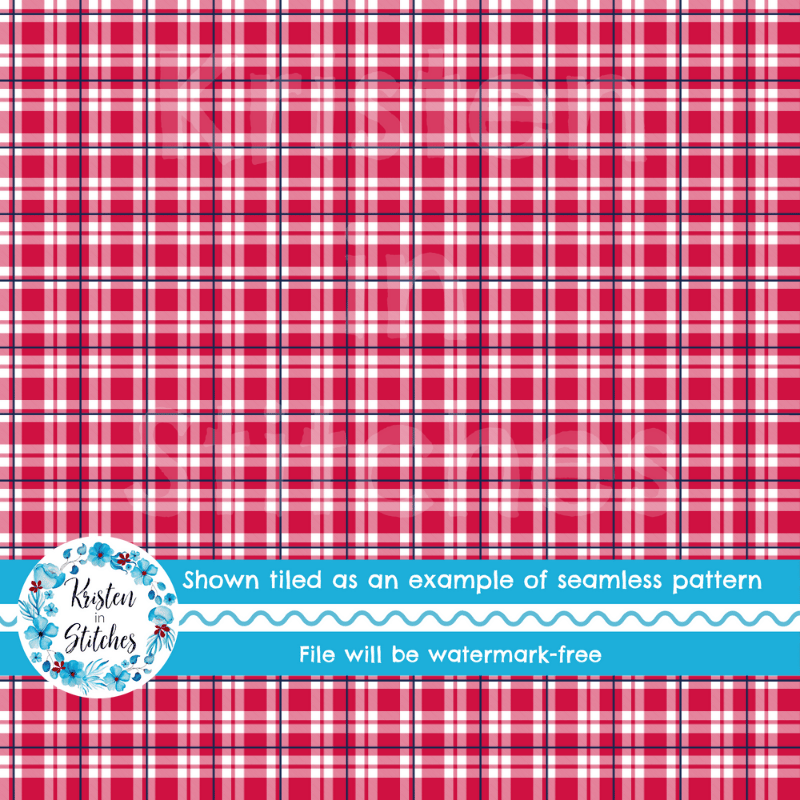 Team Spirit Sporty Plaid Seamless Pattern, Atlanta Braves Baseball Colors Red Navy