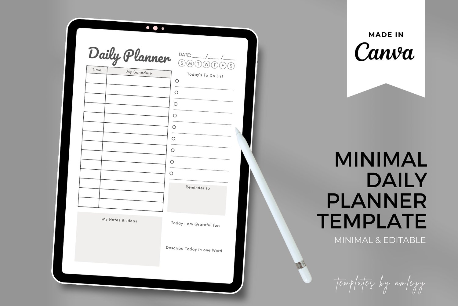 Minimal Daily Planner Template Canva | Simple Daily Schedule