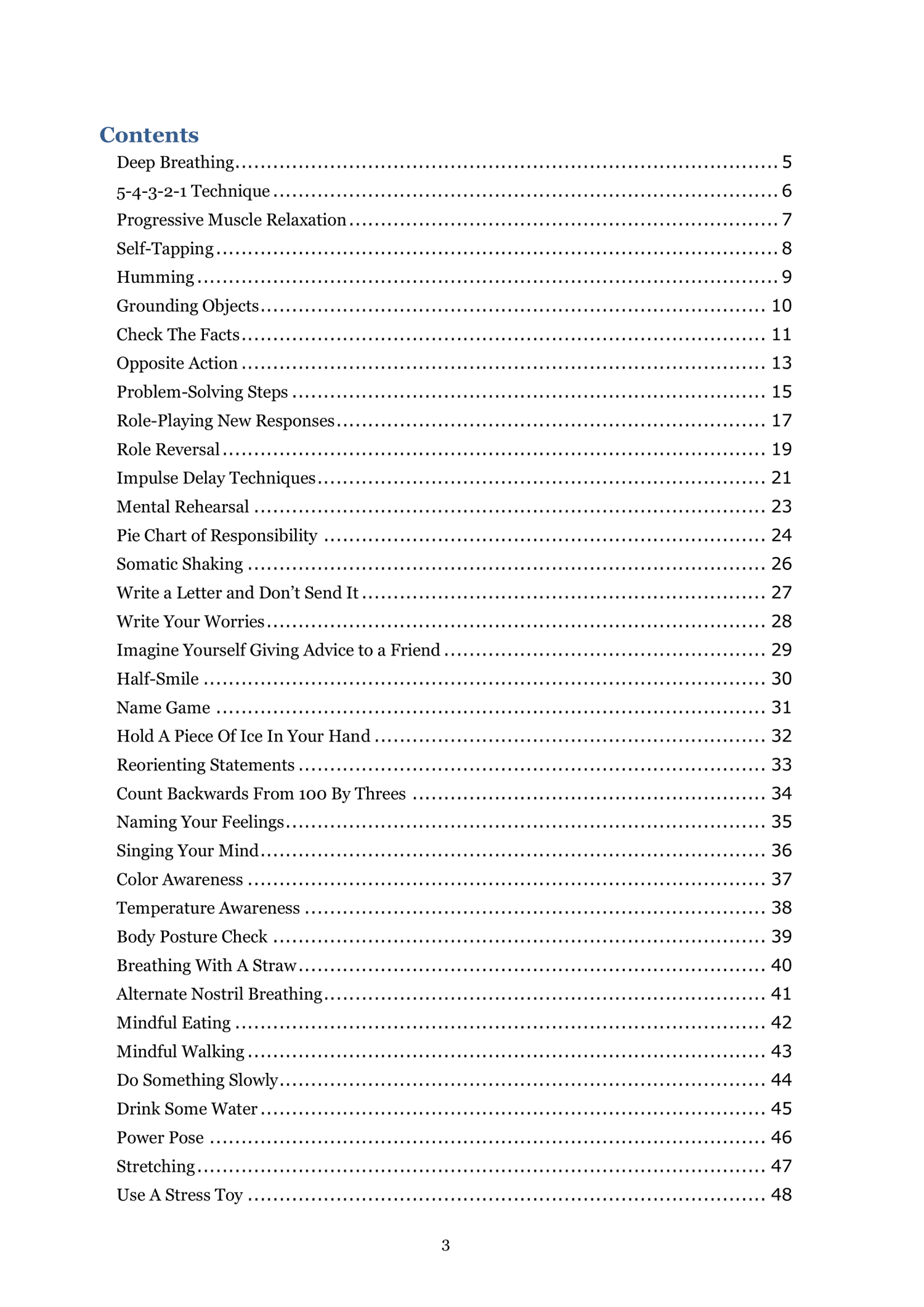More than 50 Coping Skill including: