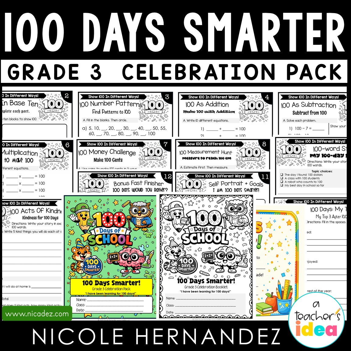 100th Day of School Activities for Grade 3 | 100 Days Smarter Math and Writing