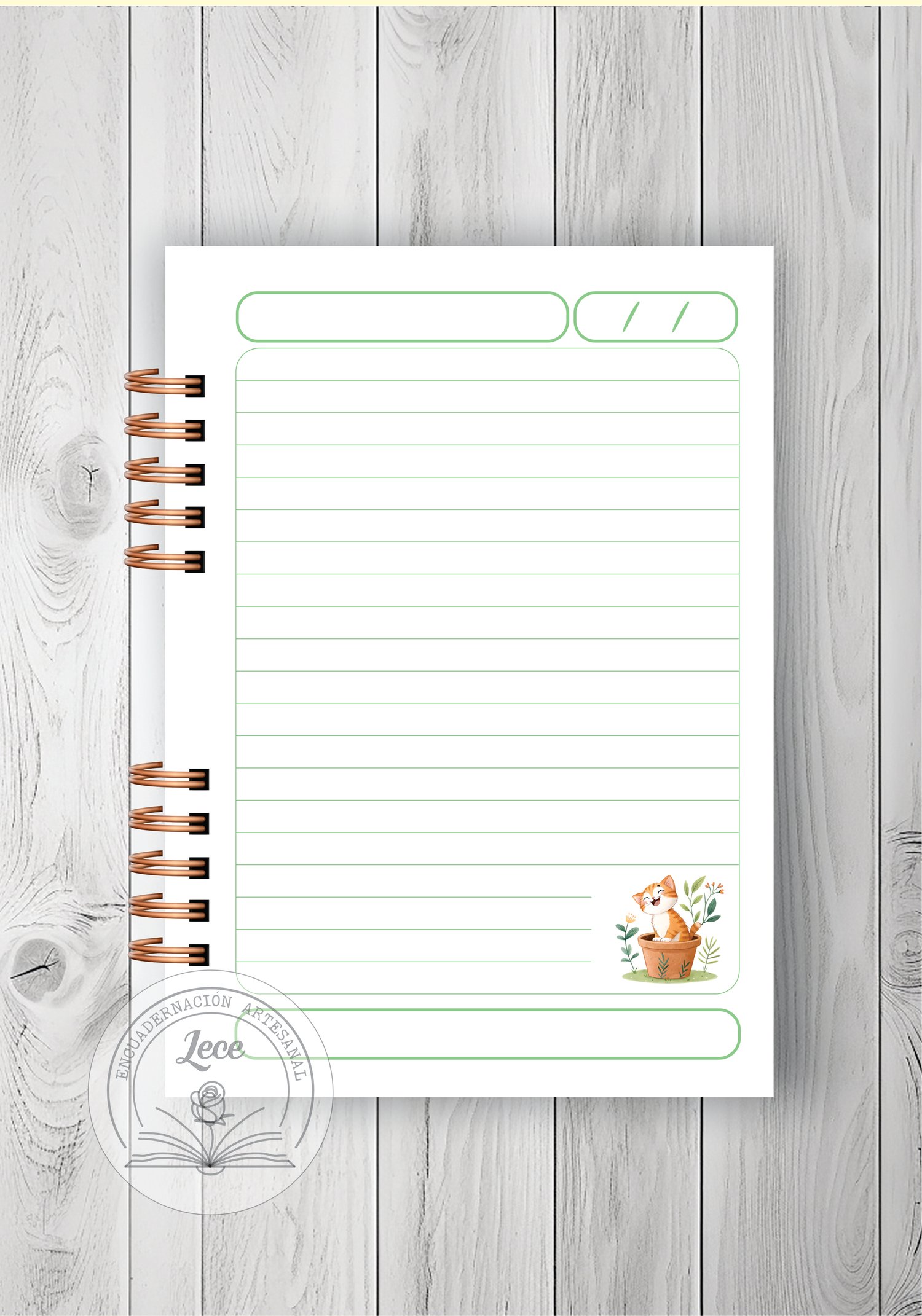 - 1 modelo de interior de 100 hojas rayadas con diseño para imprimir en tamaño A5 para anillado.