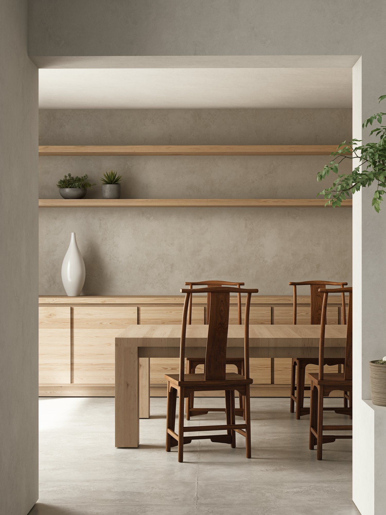 This interior scene was created entirely in D5 Render without the use of AI. Every detail, from lighting to materials, has been carefully crafted to achieve a warm, minimalist aesthetic with a natural touch.