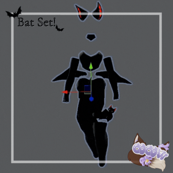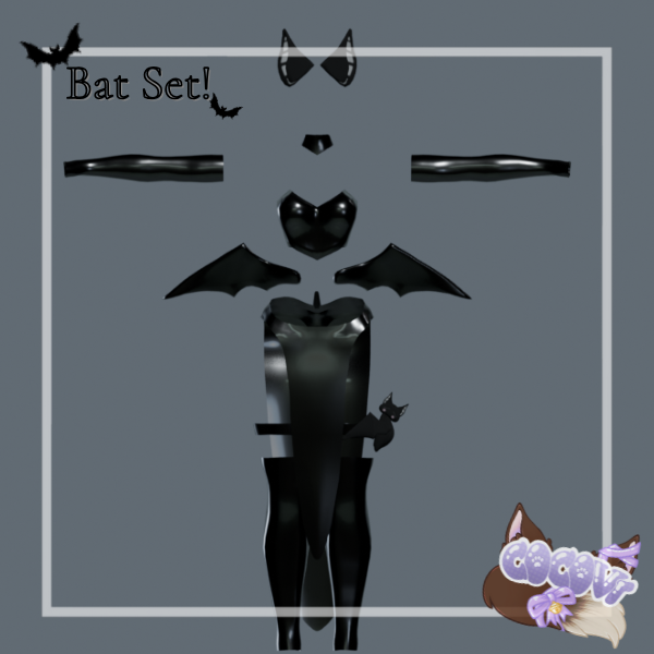 Ears, Tail, Wings, Garter, Skirt, Bat Pasties, Top 1, Top 2, Warmers, Socks, Choker, and Panties