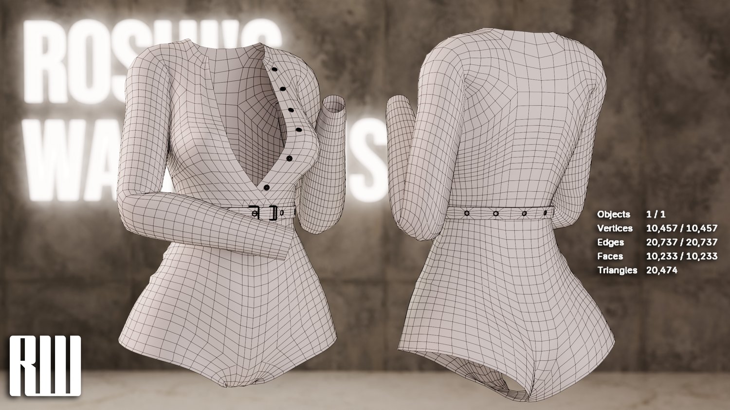 Romper made from scratch by me in Marvelous Designer, Retopologized in Blender, and textured with Substance Painter!