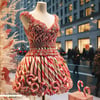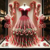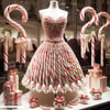 Indulge in a sweet fashion fantasy with this dazzling pouf dress crafted entirely from vibrant red-and-white and green candy canes. A whimsical blend of festive elegance and avant-garde design, it’s the perfect statement piece for those who dare to dazzle.