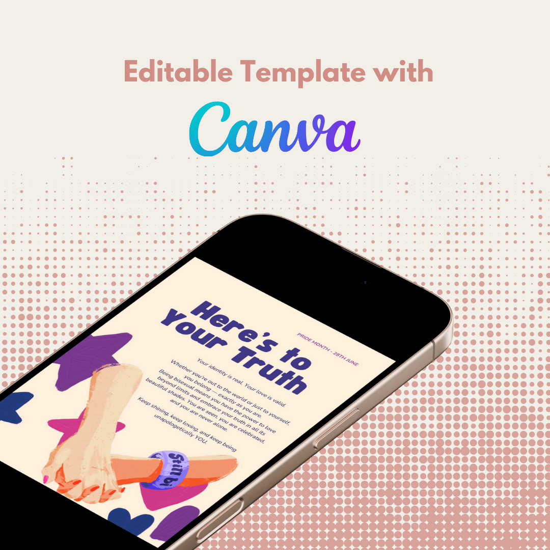 Perfect for highlighting the values of identity, individuality, togetherness, and love, this editable design is a beautiful tribute to the LGBTQIAP+ community. Whether you’re advocating for rights, honoring the fight for equality, or simply spreading positivity and support, this card is ideal for personal use, social media, campaigns, or community events. Designed to honor Pride Month in June, this template helps you share messages of unity and visibility while celebrating every unique voice.
