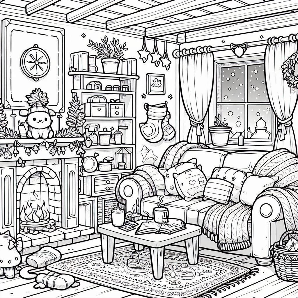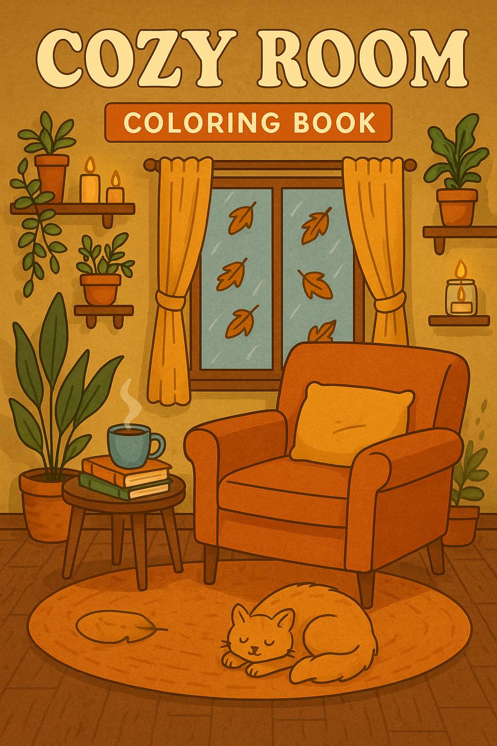 Cozy room, 65 designs, coloring ebook, digital printable product, instantly download