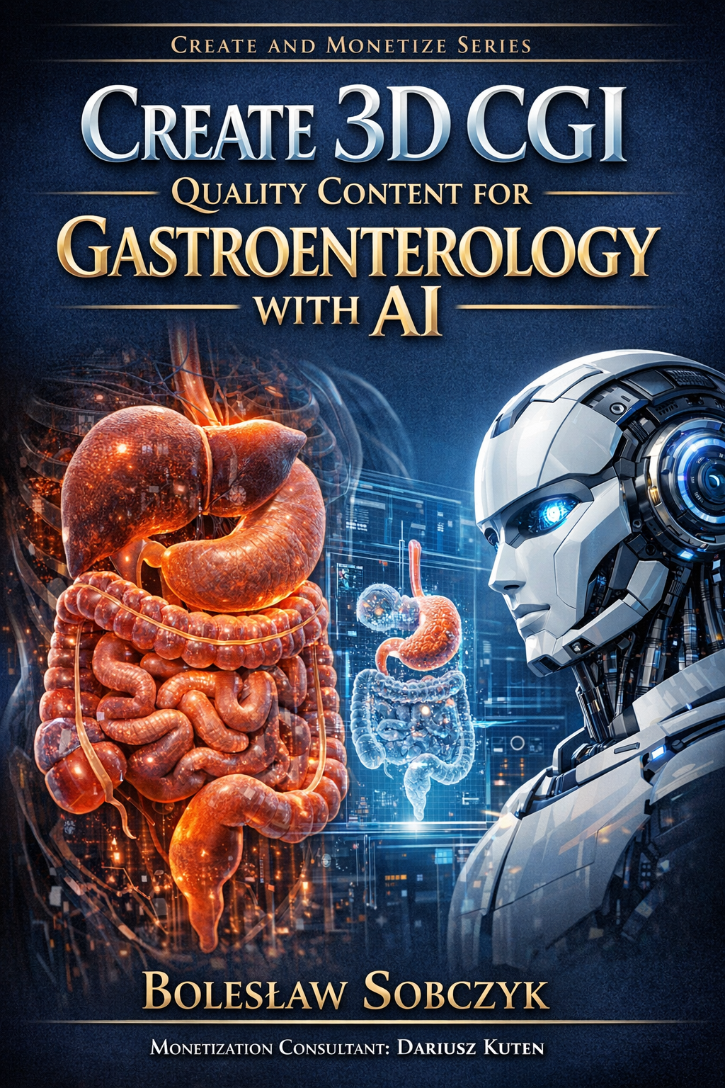 Written by renowned medical CGI creator and AI engineer Bolesław Sobczyk, together with digital asset monetization expert Dariusz Kuten, this book demystifies the entire process of using AI to produce high-quality 3D gastroenterology illustrations, animations, models, lecture aids, and VR content—quickly, efficiently, and without technical barriers.