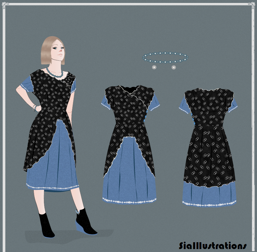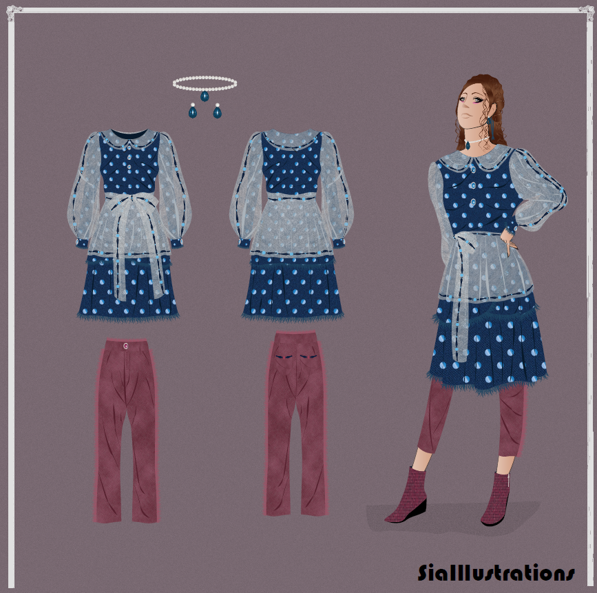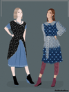 Autumn fashion is finally here!! Gear up your fashion wardrobe with "Autumn Casual Fashion Illustration Denim Edition". The first outfit is a V-line black frill upper layer with denim A-line skirt in the lower layer and short sleeves. The second outfit is a peter pan plastic fabric with long bishop style sleeves and denim skirt. The look is completed with pink denim straight pants. The high resolution illustration, front and back view of each garment is available in PDF and PNG format.