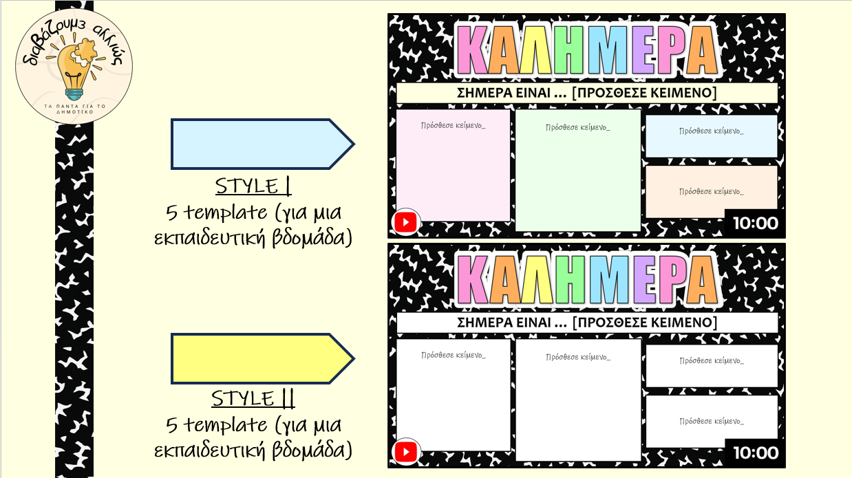Καθημερινά Templates 2 διαφορετικά στυλ για κάθε μέρα της εβδομάδας, με δυνατότητα να τα προσαρμόσεις όπως θέλεις.