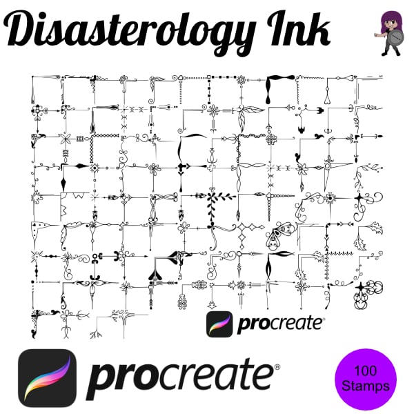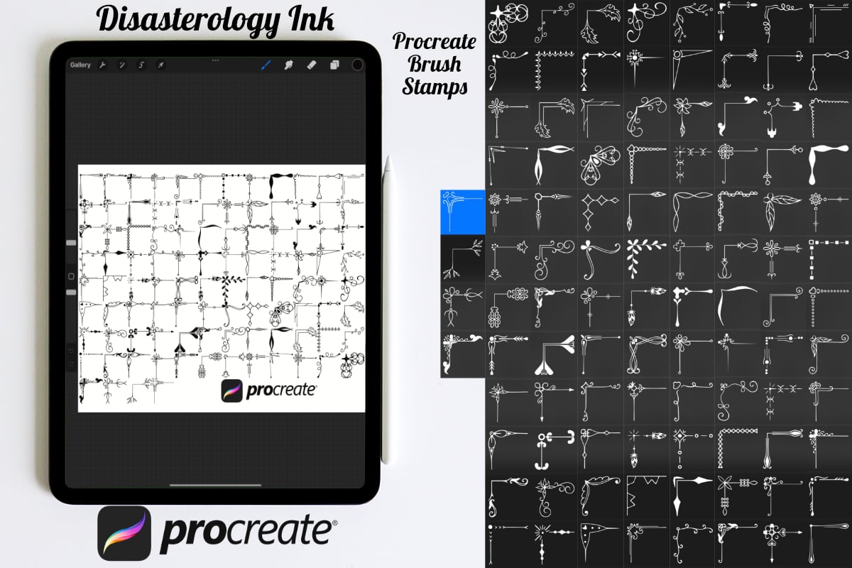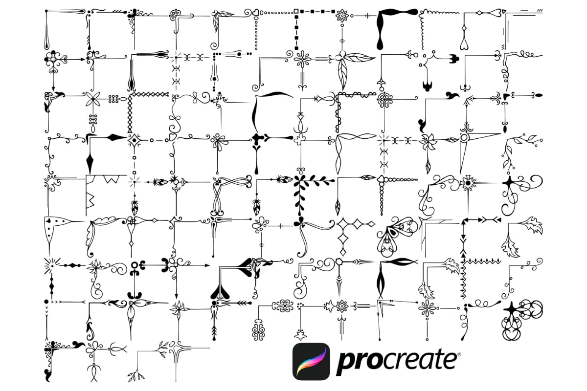 Vintage Ornate Border Corners Set 2 Procreate Brush Stamps, 100 Corners