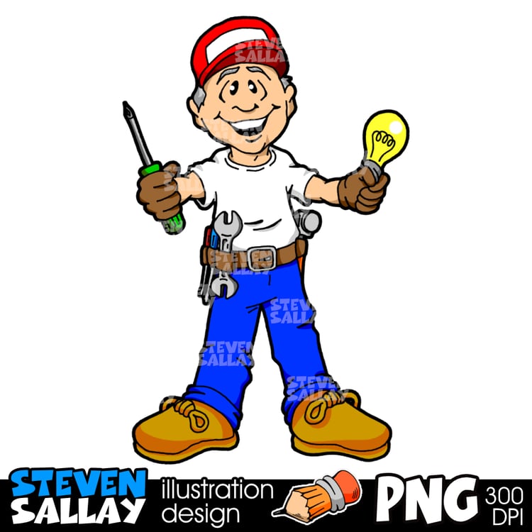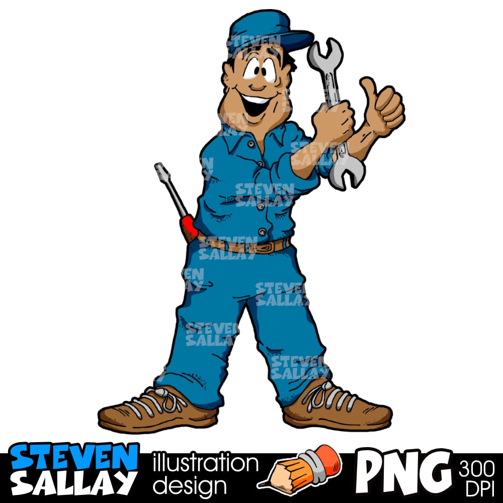 High-quality auto mechanic cartoon clipart featuring a friendly car repair technician. Perfect for garage logos, automotive branding, t-shirts, stickers, decals, social media graphics, and small business marketing. Instant digital download for commercial and personal use.