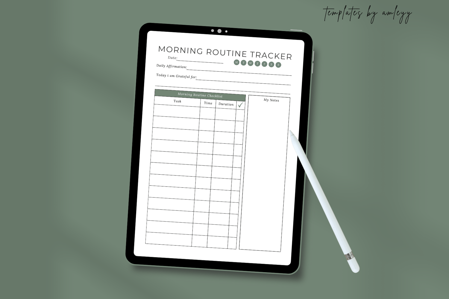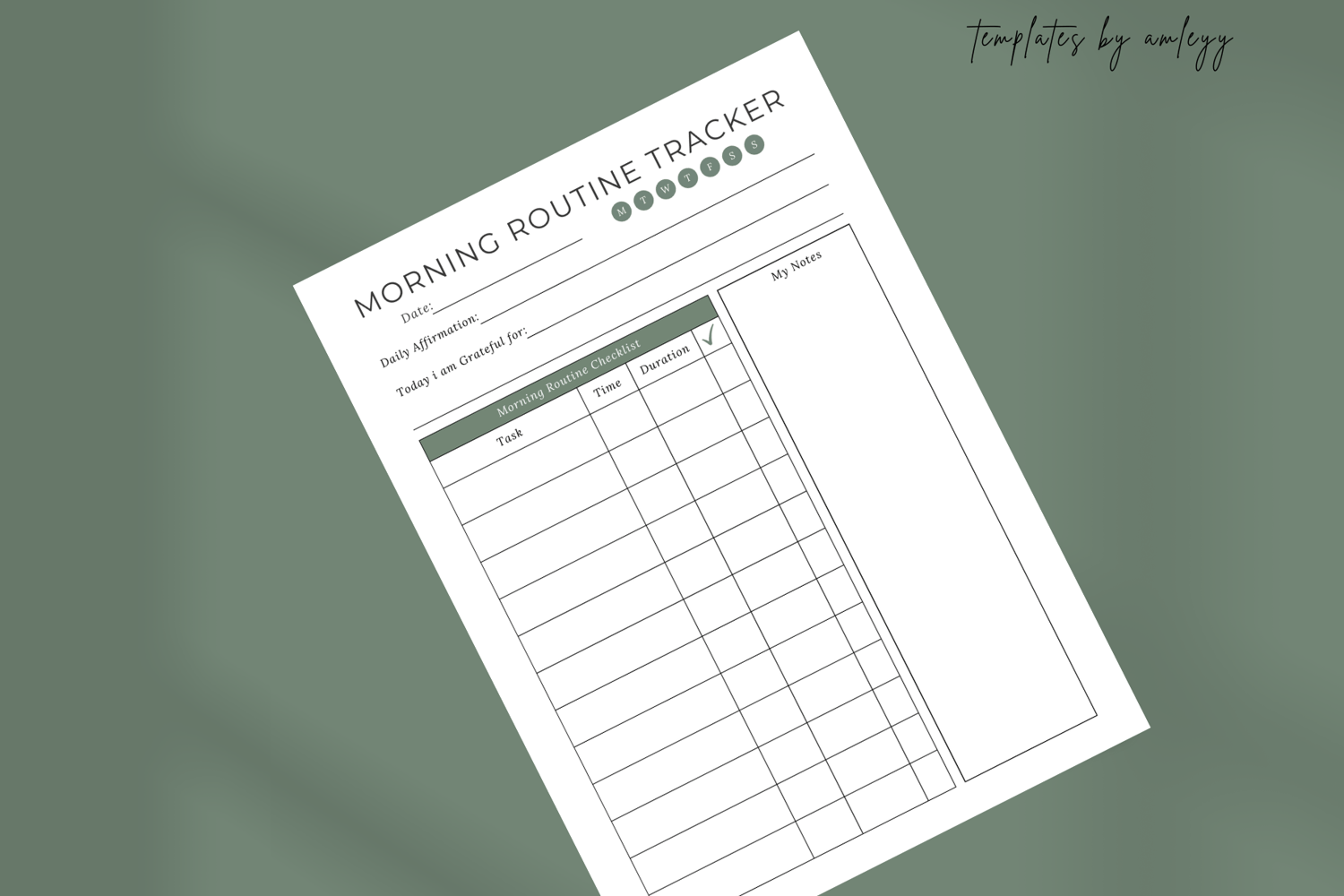 Whether youβre trying to develop better wellness habits, increase productivity, or create a structured start to your day, this printable or digital tracker is the perfect addition to your planner, journal, or digital routine system.