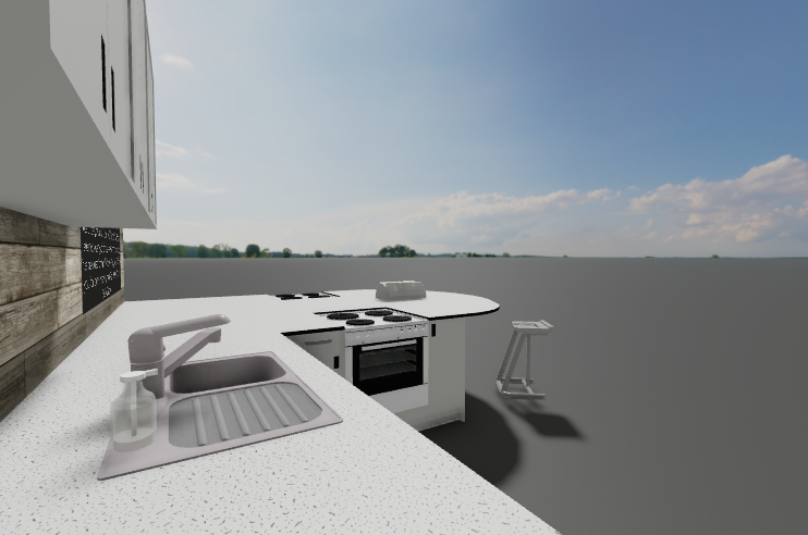 Adding to a ro-school life, we bring the classic food technology stations to the studying experience, with functional cabinet doors and an aesthetic functional oven, we allow students to feel as if they are really creating food they desire. Although food cannot actually be made using this system, it gives users the ability to roleplay with working equipment.