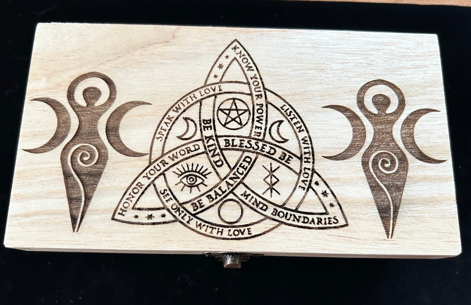 unique wooden Divination card box ideal for Tarot or Oracle with room for a few crystals if wished..