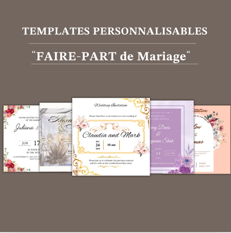 Donnez le ton pour VOTRE JOUR-J avec nos templates de « Faire-part de mariage ».