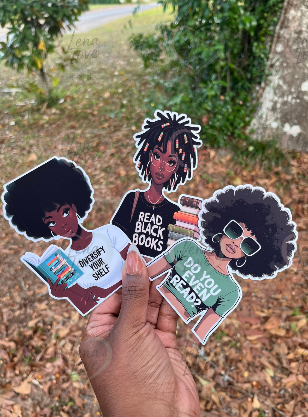 This trio of Black Girl Bookish stickers is perfect for adding bold, intellectual flair and cultural pride to your journals, laptops, water bottles, planners, and more! Each sticker features a stylish, powerful Black woman paired with book-lover quotes like "Diversify Your Shelf," "Read Black Books," and "Do You Even Read?" These beautifully illustrated designs celebrate Black literature, representation, and unapologetic reading pride.