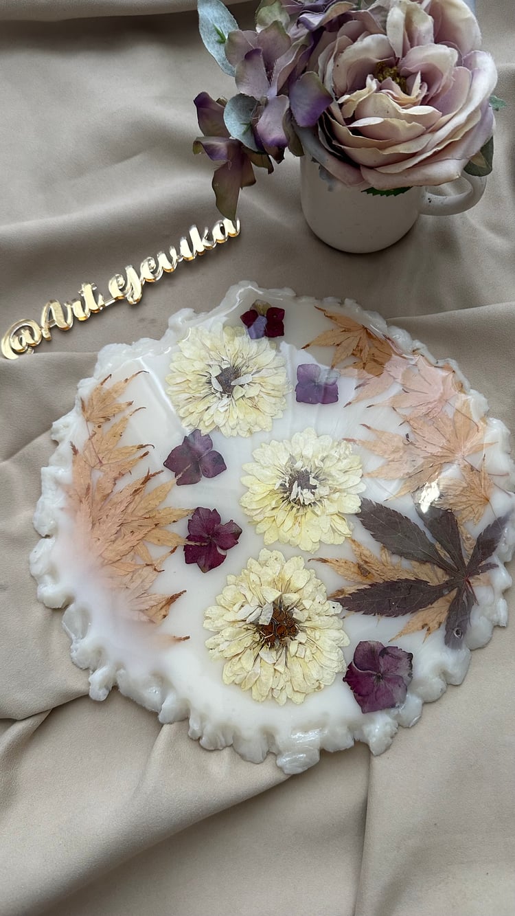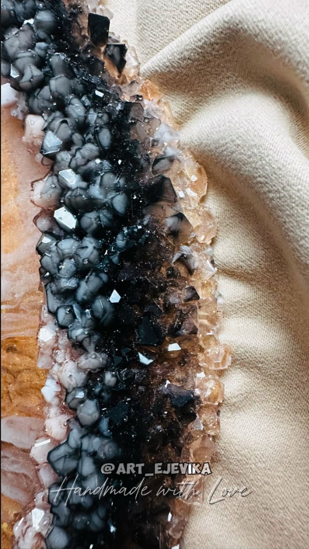 This exquisite handmade tray is a true work of art, crafted with love from epoxy resin. Its unique crystal edge, resembling shimmering minerals, and its warm tones create a sense of refinement and luxury. This tray will not only beautify your home but also become a striking accent in your interior.
