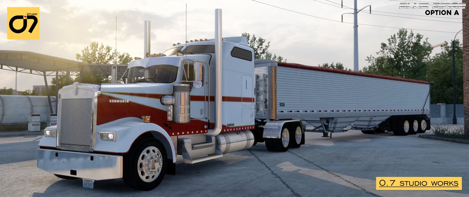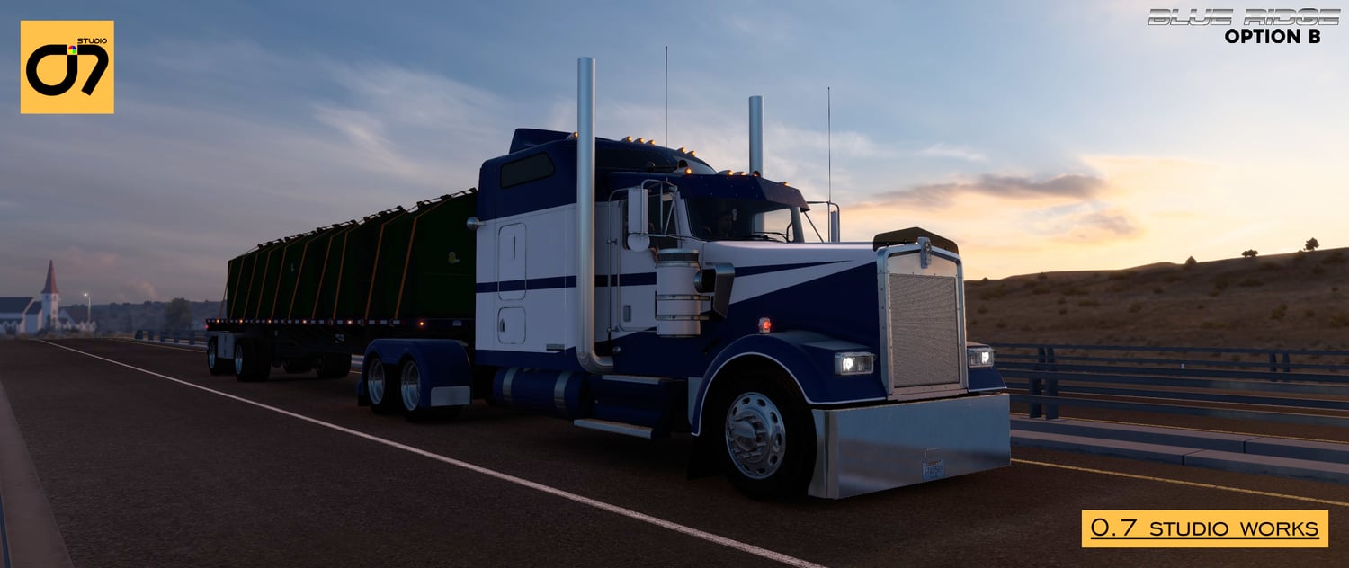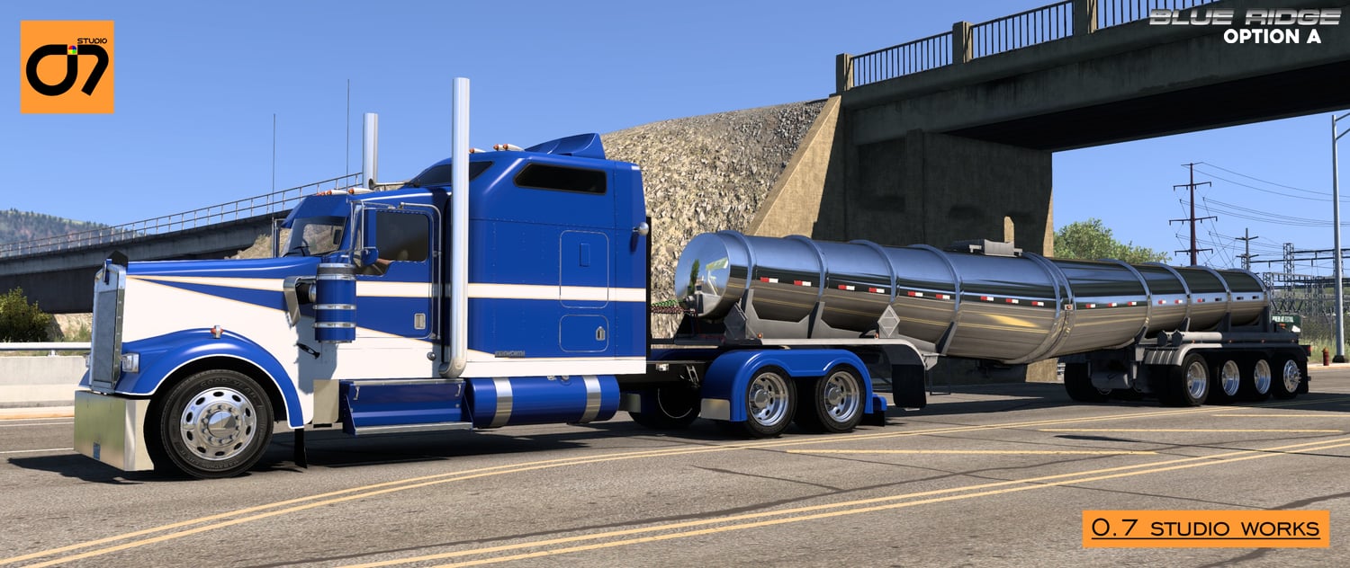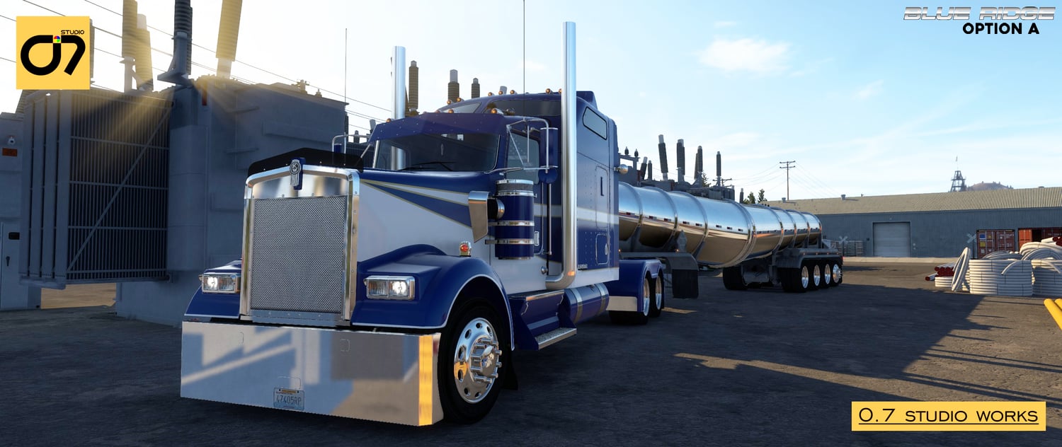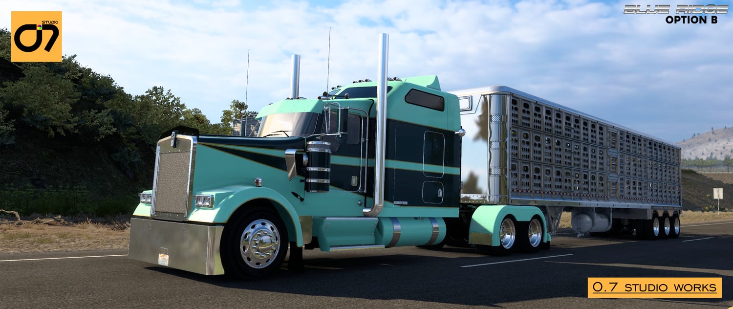 Blue Ridge Master Pack: Your Complete Customization Solution Elevate your trucking experience to new heights with the Blue Ridge Master Pack – an exclusive bundle that combines the best features of both Option A and Option B. Whether you prefer the timeless elegance of Option A, the contemporary vibrancy of Option B, or the flexibility to switch between both, this master pack offers a comprehensive solution for personalizing your Kenworth W900L. Seamlessly integrated with the SCS Model and compatible with Stock SCS W900L, the W900 Tuning Pack, and upcoming Tuning Packs, the Blue Ridge Master Pack is your passport to a fully customized and unique trucking experience.