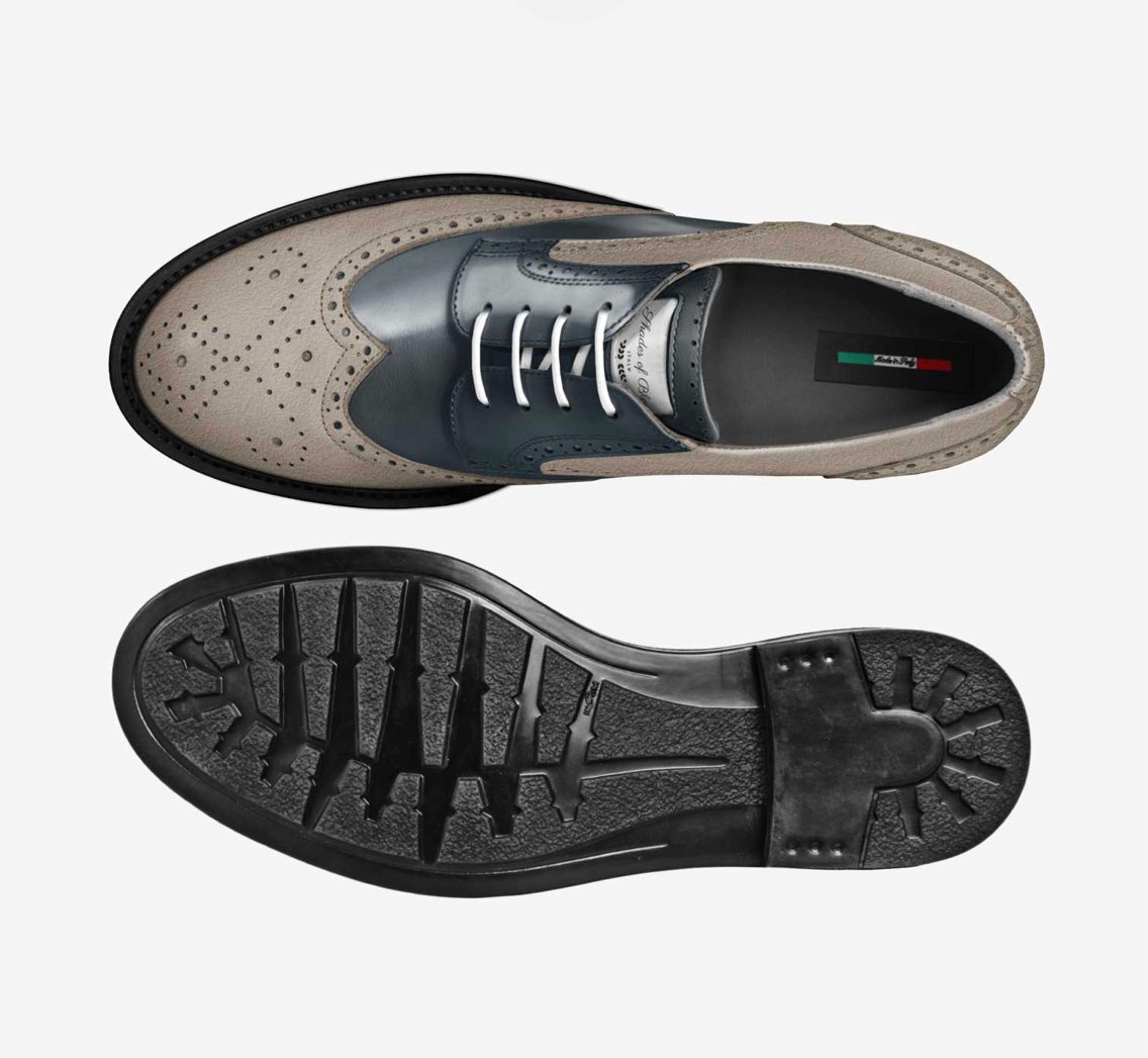 These classic and elegant men's shoes display genuine Italian craftsmanship. This classic derby shoe offers an English brogue style that's made more comfortable by an anti-slip rubber sole, crafted from high-quality materials.