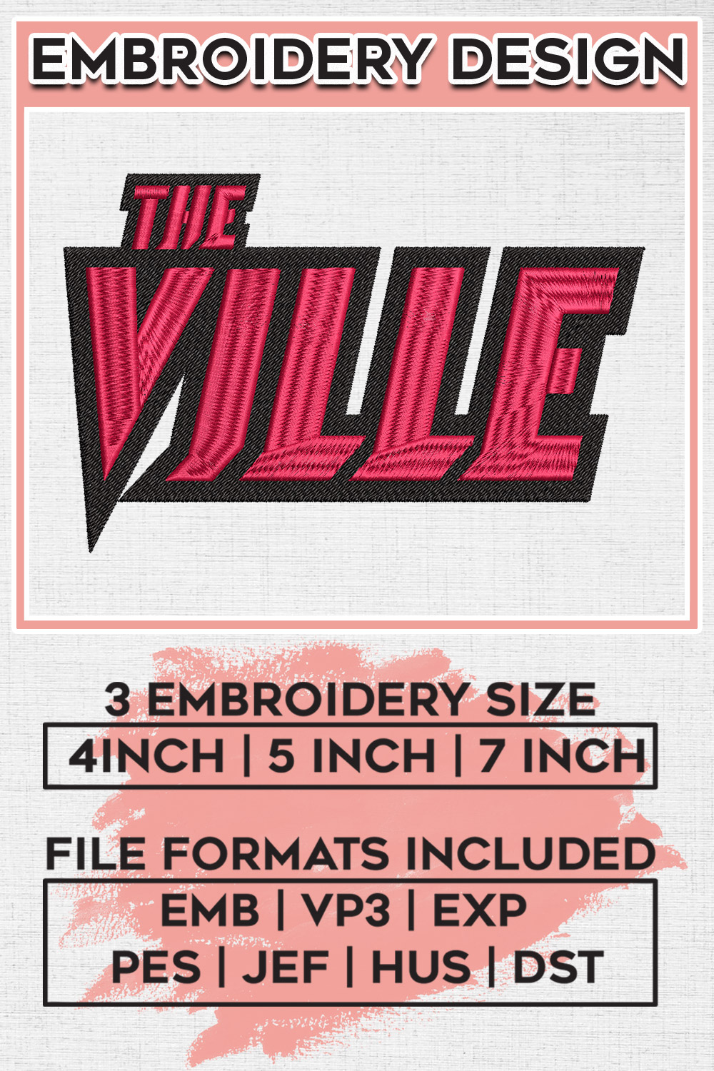 The Ville Football Team Writing Logo Embroidery Designs, NCAA Louisville Cardinals Machine Embroidery Files, NCAA Logo embroidery designs, Ncaa Cardinals Logo, Digital Download